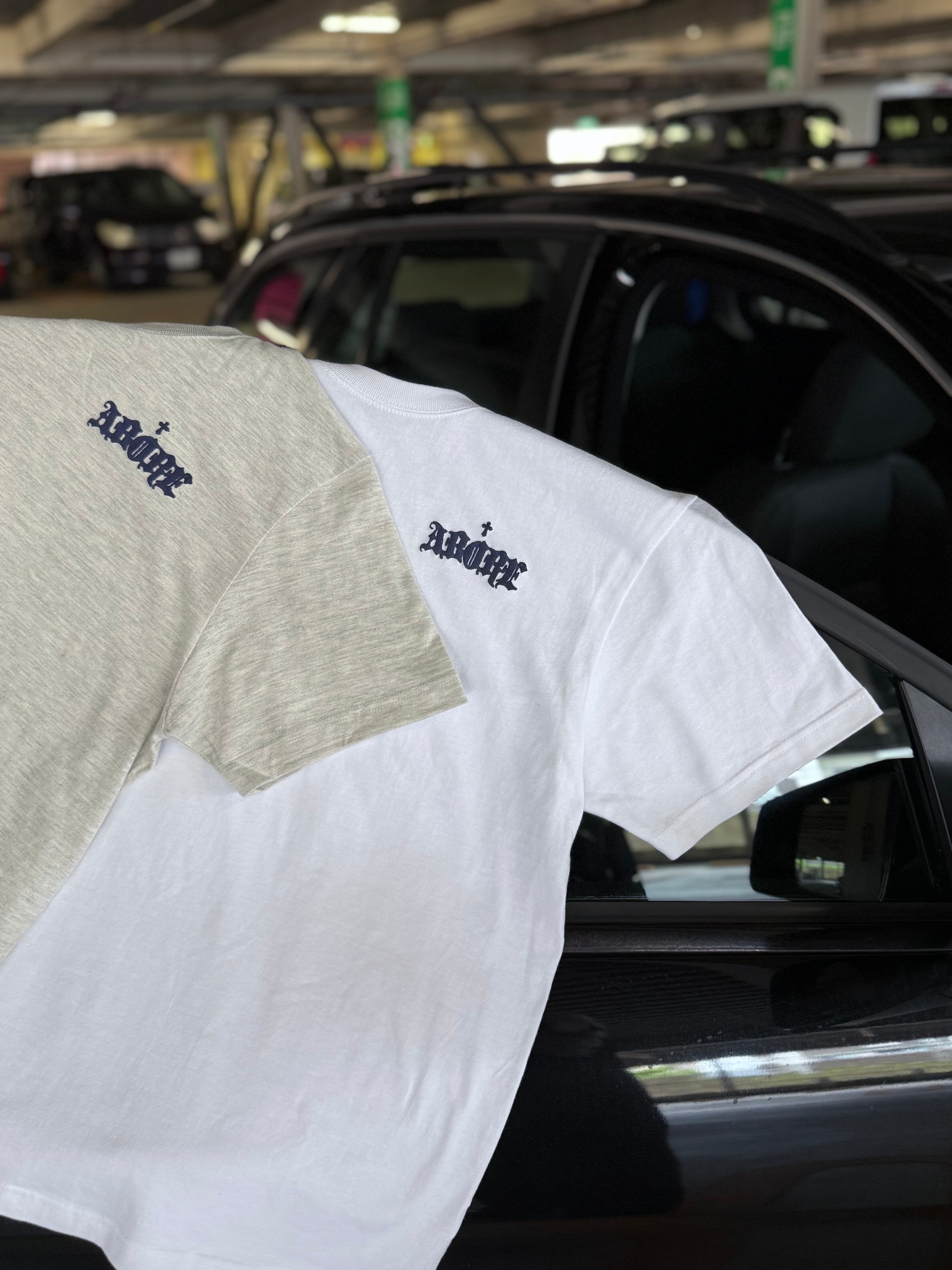 5.6オンスT-shirtの胸元にABOREのロゴを入れました。